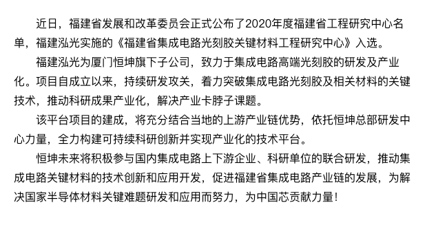 硬核重磅!福建泓光獲光刻膠省級工程研究中心認(rèn)定